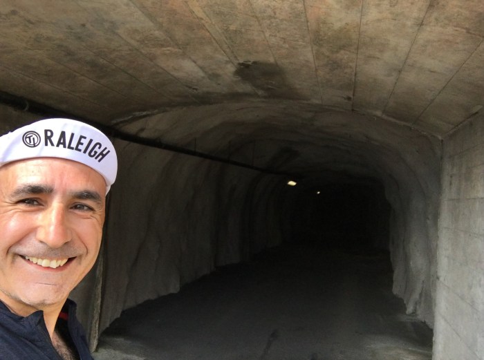 The bicycle tunnels in the mountains were a pleasant place to take a break, when you drive in the sun all the time and suddenly enter such a tunnel, it is quite strange. For a few seconds you see nothing at all. But it was pleasantly cool.
