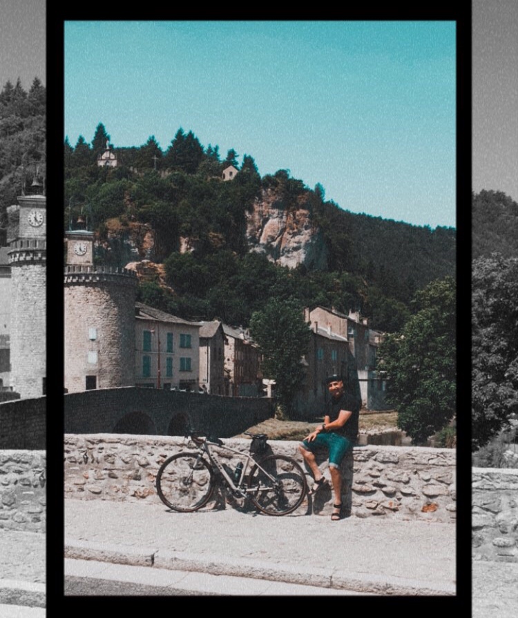 Meyrueis, Lozere June 16, 2021, warm cloudy weather. I grab my stuff from my car and assemble my bike. Just like the Rider Tim Krabbe back in 1977 – People are also watching me from the terrace, like back than in those days to Tim, the only difference from then must be that I hear them thinking out loud: What idiot is that he is now cycling here in this heat… it doesn’t‘t interup ore change my intentions, my 22 won’t stay clean and my french is as bad as my dialect to all the french