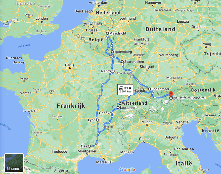 Well, I like it. The car I drive to France is a 15 year old Volvo, my buddy for the last 5 years, our last holiday together , stickered with country flags that we have all visited. I feel the looks, Austrian registration, in French trough Belgium and Luxemburg driving. Or would they look at my bike on the back? I don’t care ,if they ride my wheel. I only know the course from the books so they will not folllow my going anyway, but the route is selective enough to enjoy. If you’re good…if not , it will be a hell